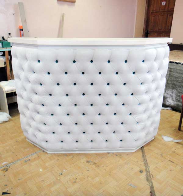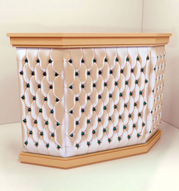 Стойка ресепшн с велюровой обивкой в виде каретной стяжки
