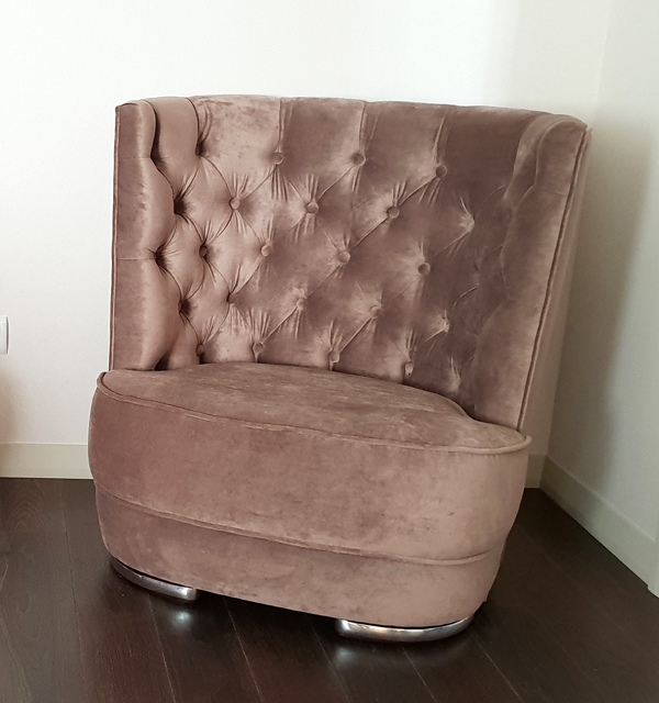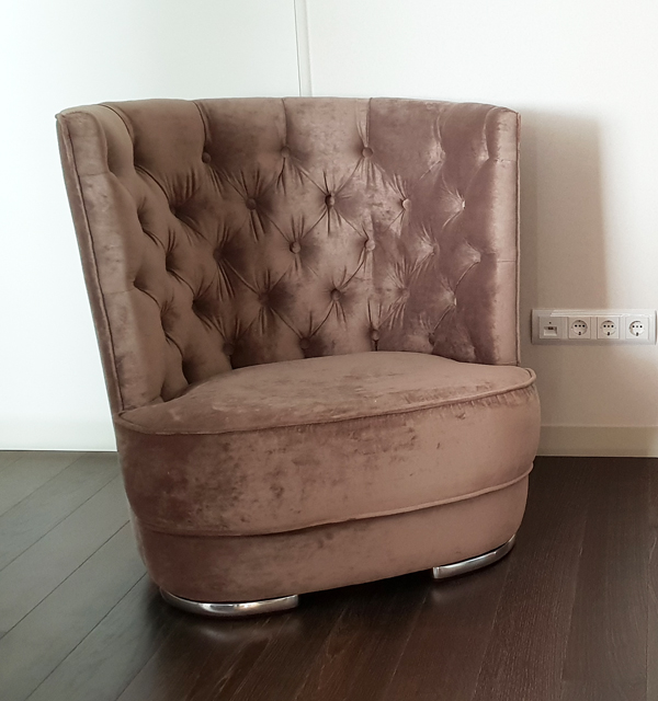 Адаптированная копия кресла Greppi High Capitonnè от Vittoria Frigerio.